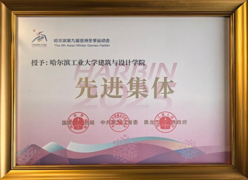 На днях Институту архитектуры и дизайна Харбинского политехнического университета было присвоено почётное звание «Передовой коллектив» за выдающийся вклад в подготовку и проведение IX Зимних Азиатских игр в Харбине. Данная награда учреждена Государственным управлением по делам физкультуры и спорта КНР, Партийным комитетом провинции Хэйлунцзян и Народным правительством провинции Хэйлунцзян в знак признания весомого технического вклада и значимой роли, которую институт внес в период подготовки к Зимним Азиатским играм.